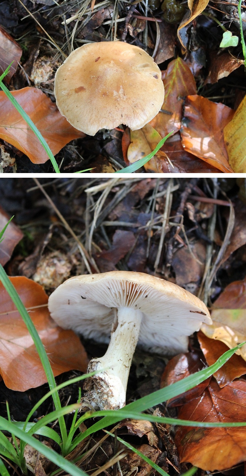 Hallo in die Runde, in meinen Exkursionsgebieten im Vorderen Bayerischen Wald dominieren sauere Böden - sie entstanden aus Gneis bzw. Granit. Doch am Südrand des Bayerischen Waldes, dort wo er an den Gäuboden angrenzt, finden sich stellenweise relativ mächtige Lössablagerungen (Lössaufwehungen); stellenweise kann man über 50 cm tiefe Lösslehmschichten ergraben. So ergaben sich die folgenden Funde von kalk-/basenliebenden Arten, die zunächst merkwürdig erscheinen, vor dem Hintergrund des in der Umgebung recht saueren Bodens... Zwei Arten möchte ich zeigen, v. a. auch weil sie für mich Zweit- bzw. Erstfunde sind! Als Zweitfund: der Knollige Schleierritterling ([Leuco-]Cortinarius bulbiger), hier ein bißchen "schiefknollig". Die Farben am Stiel täuschen ein wenig: das Sporenpulver im Abwurf war hell und die restlichen Mikros passen ebenfalls.