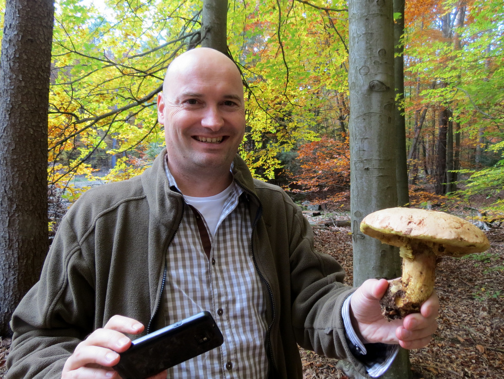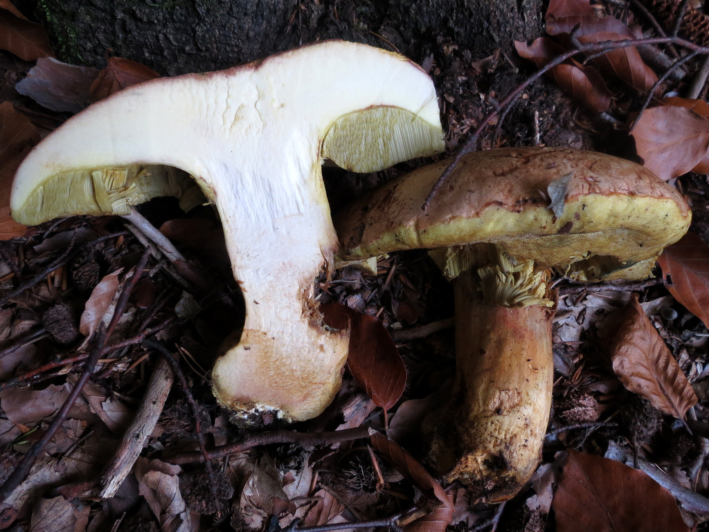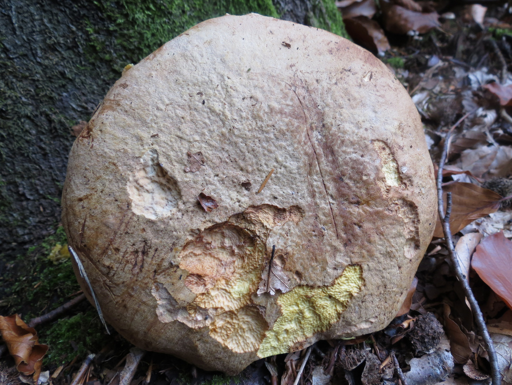 Während ich Steinpilze auf Brauchbarkeit prüfte, entdeckte Christoph dicht daneben einen Anhängselröhrling (Boletus appendiculatus), im Buchenwald mit eingestreuten Kiefern. Die Fundstelle ist für diese Art seit 2 Jahren sehr zuverlässig (Hartmut kennt sie, gelle?)