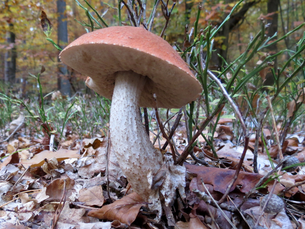 … und als Kuriosum eine Eichenrotkappe mit gebrochenem Stiel und nachgewachsener Stützkonstruktion. Was es so alles gibt :-)