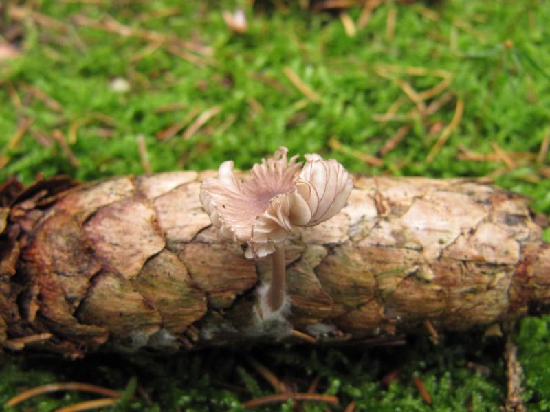Hallo, diesen Fund halte ich für eine Mini-Ausgabe des Breitblatts (Megacollybia plathyphylla). Lamellen breit angewachsen. Sporen 8,0-12,5 x 5,0-7,5 µm, inamyloid. Könnte das hinkommen? Viele Grüße