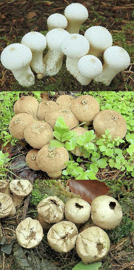 Bei der Bitte Wald-Paulis nach Benennung dieser Art holten mich wieder die Fragen Ratsuchender ein, ob der Pilz denn eßbar sei. Und in den Körben liegen Exemplare, gegen die Wald-Paulis Pilz noch jung aussieht. Neulich stand jemand mit riesigen Hasenstäublingen, aus denen eine schwabbelige olivfarbene Masse quoll, vor meiner Tür und wollte wissen, wie man die zubereitet. Er habe zwar gelesen, daß das Innere nicht schwarz sein darf, war sich aber über die Farbe dieser Masse nicht im Klaren. Auf der angehängten Collage sind die drei "Hauptentwicklungsphasen" von L. perl. abgebildet