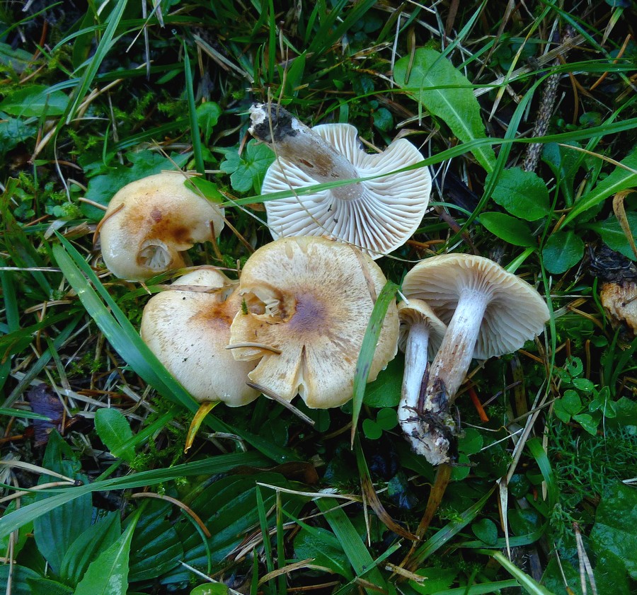 Die Pilze reagierten im kalten Regen ziemlich hygrophan. Nass schmierig; Fleisch ockerlich und Lam. weisslich dann creme