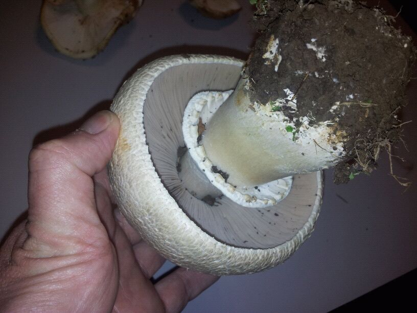 ...heute gefunden...hart wie ein Wurzelmöhrling, wohl grossporiger Champignon (urinascens)