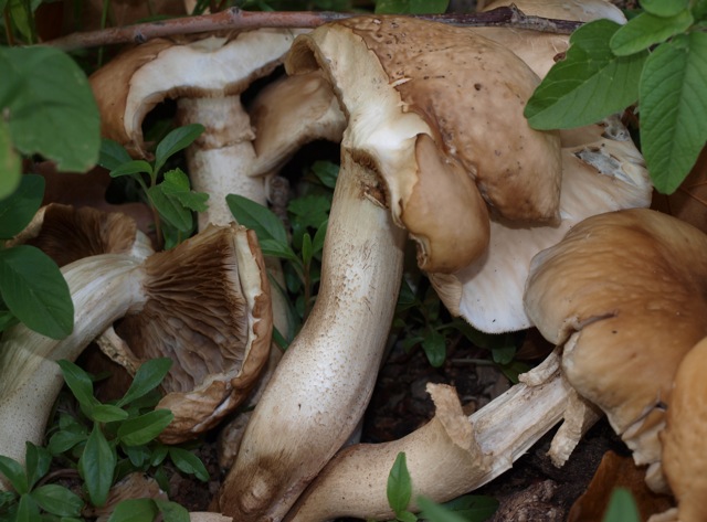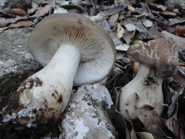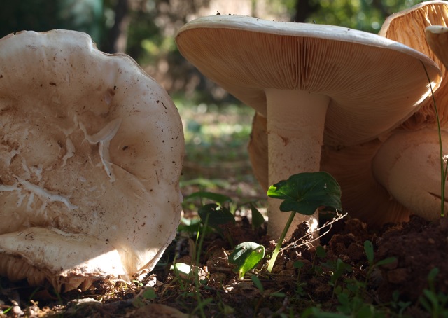 3) nochmal Amanita ovoidea, Eierwulstling, von einem anderen Standort, ich habe einen ausgebuddelt, konnte aber keine Volva dingfest machen, trotzdem meine ich, er müsste es sein, ein Grüppchen von 5 oder 6 Fruchtkörpern, ziemlich groß, ca. 15 bis 20 cm Hutdurchmesser, leicht fischiger Geruch