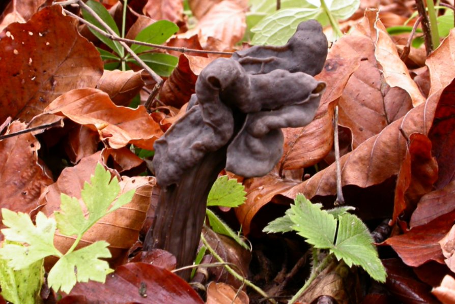 Grubenlorcheln besiedeln den Buchenwald.