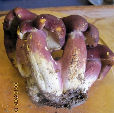 Hallo, ich habe da noch ein Foto von meinem Bekannten bekommen, welches den Pilz in einem anderen Lilarot zeigt. Entweder es hilft, oder es verwirrt noch mehr. (was natürlich nicht meine Absicht ist)