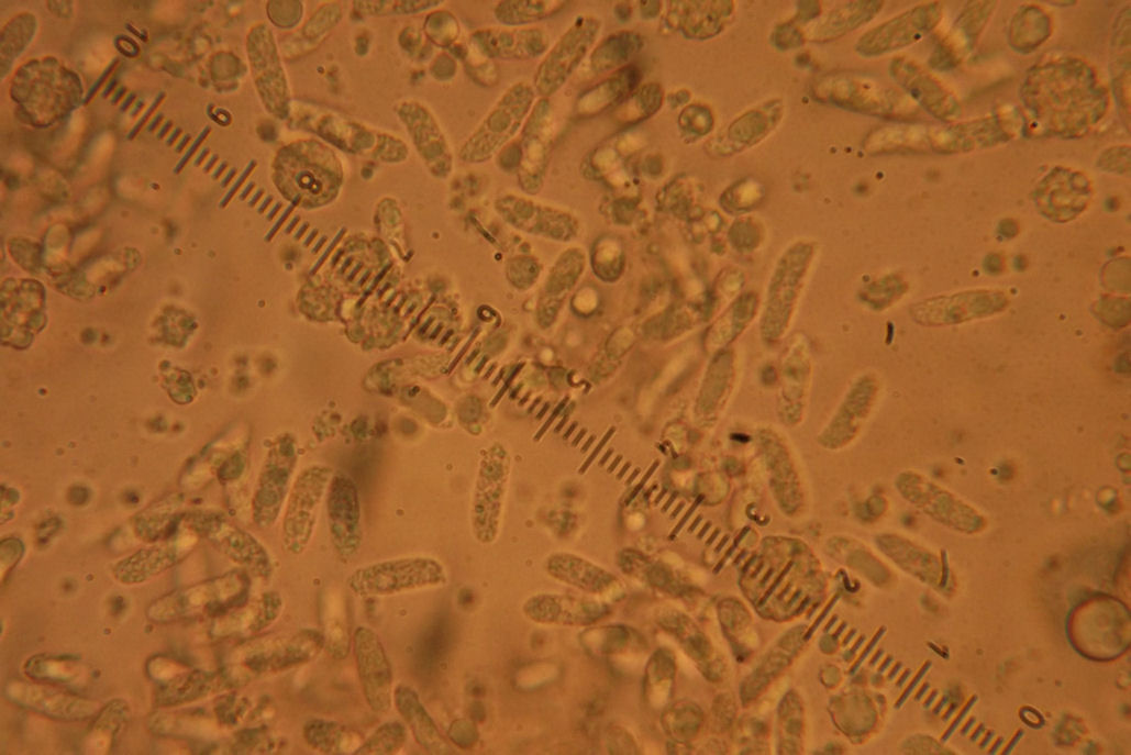 Vergrößerung 630fach, 1 Teilstrich=1,52µm. @Gelbfieber,