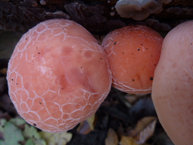 Der "Lachsschwamm " hat 3 auffallenden Eigenschaften: 1. Die roten Guttationstropfen am Stiel. 2. Die Netzzeichnung auf dem Hut (wenn jung). 3. Die gummiartige Consistenz des ganzen Pilzes. Gruesse aus Sued-Limburg, Henkie.