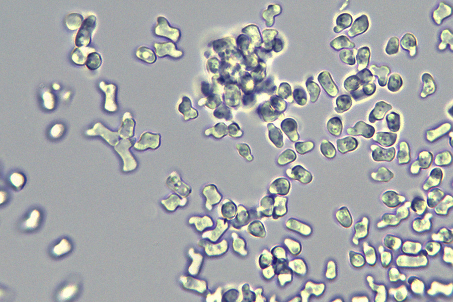 das noch zum Pilz gehört, kann ich nicht zuordnen - evtl. ist dies auch für die Sporenform verantwortlich?
