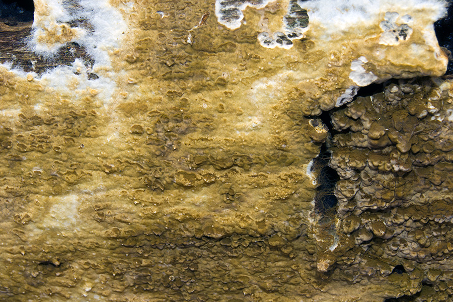 Gleich daneben am selben Stamm, darum wollte ich eigentlich einen Bogen machen, noch ein gold-gelb-grün-farbener Rindenpilz.