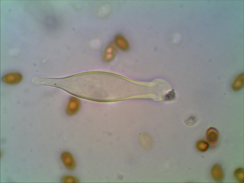 Liebe Pilzfreunde Hier ein Rißpilz, den ich an Ditte schicken werde. Auffällig war der Geruch nach Geranien im frischen Zustand, Kollektion stammt aus einem Kalklaubwald bei Karlstadt, in der Nähe waren aber auch noch Lärchen. Die Cheilozytiden sind meist auffällig kopfig endend und nur selten mit Kristallen besetzt.