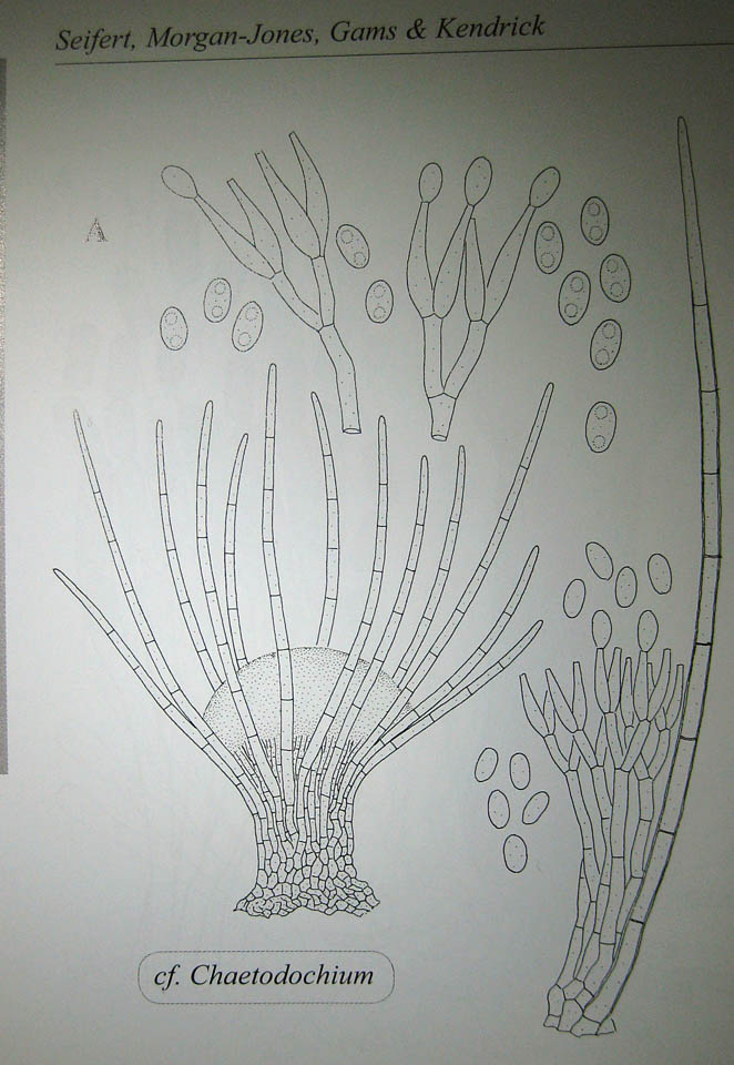 ich hab mal grad die Abbildung von V. ciliata aus Seifert et al. 2011 Hyphomycetes abgeknipst. Das sieht doch ganz gut aus. Volutella kommt (als Genus) danach auch auf Dung vor, auch wenn das in diesem Werk nicht ausdrücklich für ciliata belegt wird.