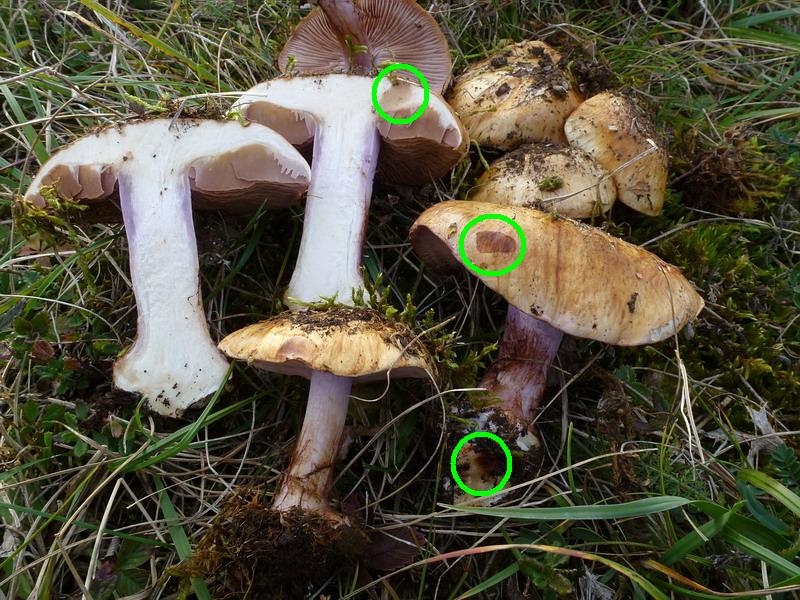 Hallo Hias Ich hatte versucht, alle Kollektionen auch im Schnitt zu fotografieren. Ich hatte KOH 20% mit und jeweils eine Reaktion auf Hut, im Schnitt und Knollenunterseite hervorzulocken. Genauere Infos zu den wichtigsten Aufsammlungen folgen im Winter, wie Sporengröße und Ornament, Sporenform sowie HDS, denn es sollte von allen unklaren Kollektionen Trockenmaterial vorliegen. Einiges ist aber leider vergammelt, weil nicht richtig getrocknet. LG Hartmut