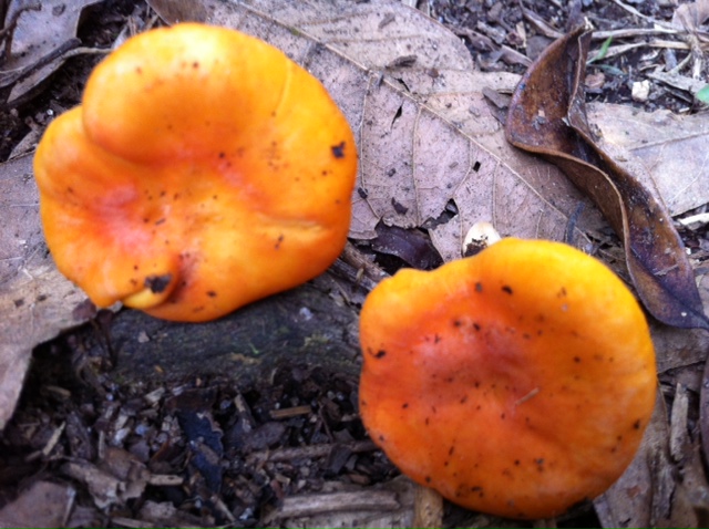 Einer meiner Söhne hält sich gerade in Brasilien auf. Er schickte mir die Bilder eines auffälligen Pilzes. Ich denke es ist kein Leistling,doch könnte dies vielleicht ein Falscher Pfifferling bzw. Hygrophoropsis aurantiaca sein?