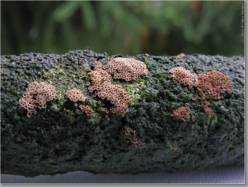 So rasig schaut die Wuchsform auf entrindetem Substrat aus.