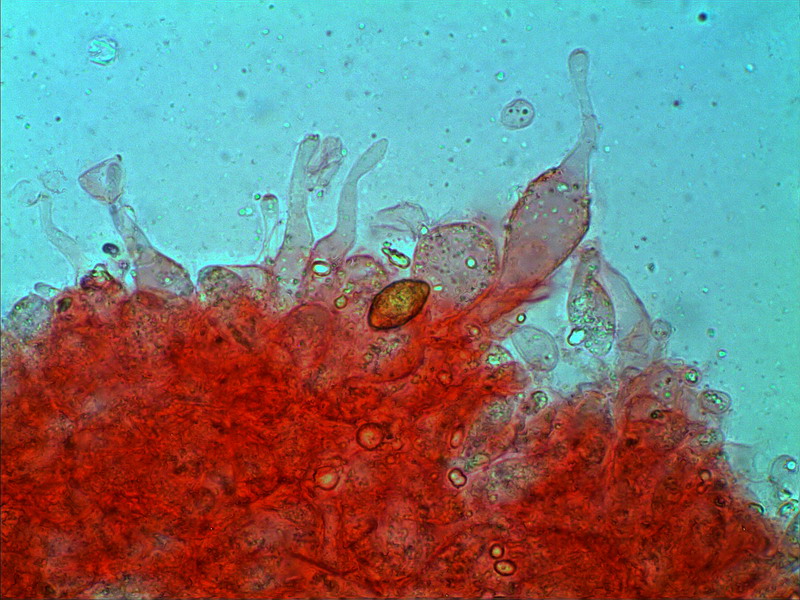 Stimmt! Hart wie Hartgummi. Auf einen braunen Kollegen bin ich schonmal reingefallen. : 4.) Mycena adscendens wäre da mein Favorit Bis auf die Cortinarius Fremdspore (weiß garicht, wo die jetzt herkommt), passt alles recht gut. Standort Weidentotholz : 6.) vielleicht Schizopora