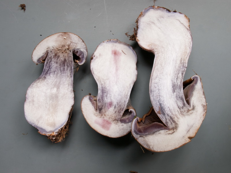 Fleisch: in Hut und Stiel blass lila, im Stiel violett marmoriert; auf Druck nicht fleckend;