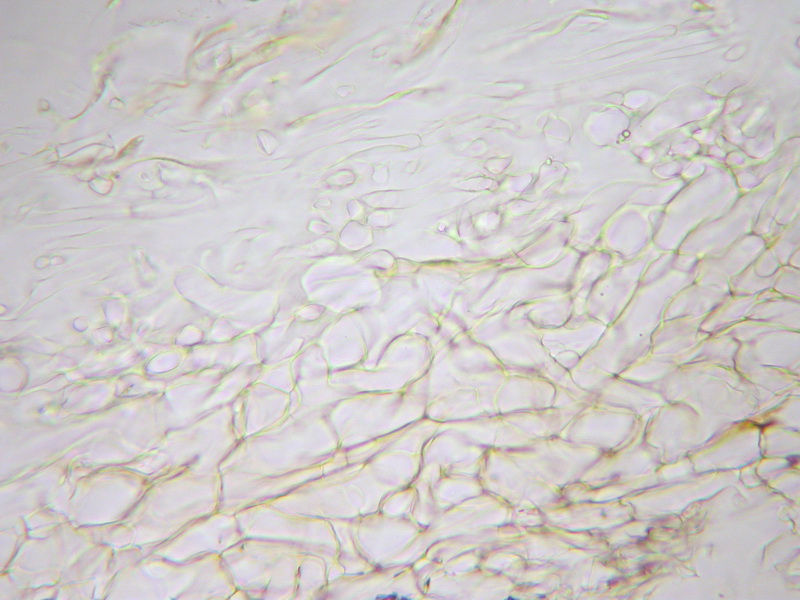 HDS: Epicutis stark gelifiziert (Ixotrichoderm), Zellen nur bruckstückhaft, hyalin oder blass gelblich pigmentiert (vermutlich feinst inkrustierend); Hypoderm kaum ausgeprägt, Zellen in der Subpellis kauf 10 µm breit, ohne Dickwandpigment;