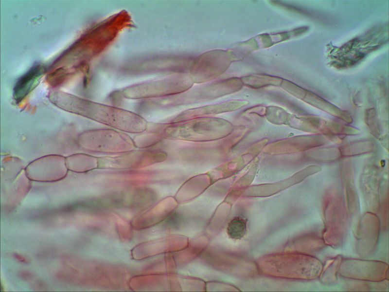 Diese Kollektion hat allerdings andere mikroskopische Merkmale, vor allem was die HDS betrifft, mit spitzauslaufenden Endzellen. Dieses finde ich gut abgebildet als Merkmal von pseudoaeruginea wieder, auch der Vergleich zu meinen hellhütigen Funden zeigt deutliche Unterschiede. Vielleicht ist der Fund interessant, bevor ich ihn auf den Kompost haue.