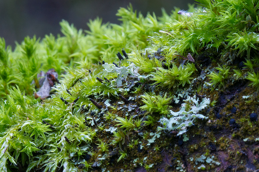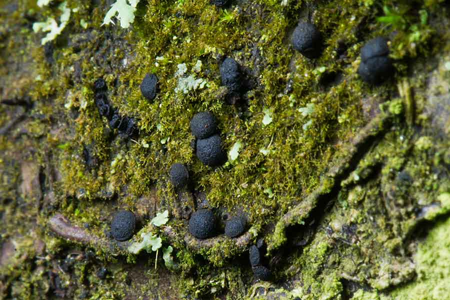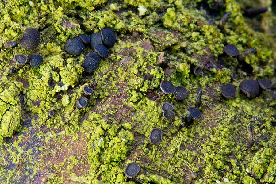Anamorphe/Conidiomata: Vorwiegend abseits und im bemoosten Teil der Teleomorphe gesellig wachsend, einzelne auch zwischen