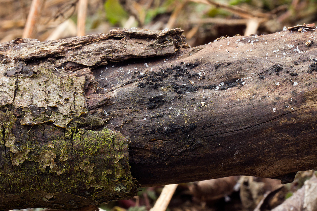 Ebenso diese nochmals weitaus kleineren schwarzen Knubbel, die einige Zentimeter abseits und auf der entgegengesetzten Astseite,
