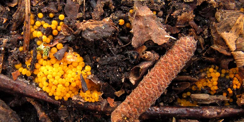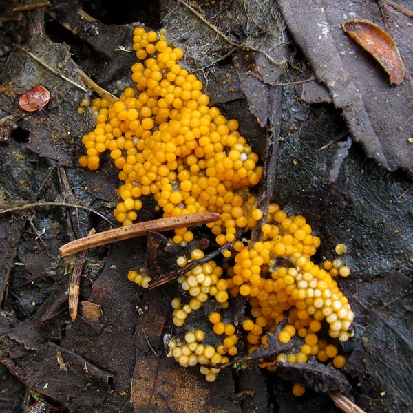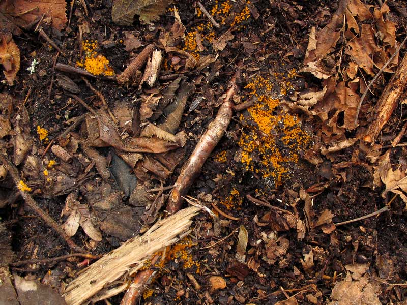 Zwischen den normal orange-gelben Fruchtkörpern tauchen auch rein weiße oder auch zweifarbige auf.