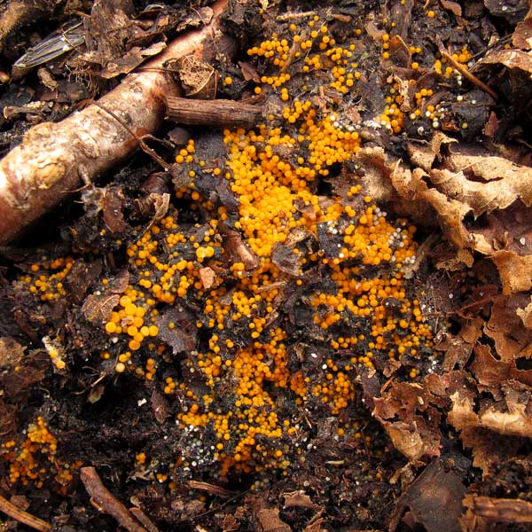 Die Fruchtkörper sind zuerst kugelig und bilden dann eine napfartige Vertiefung und scheinen sich dann mit der Zeit