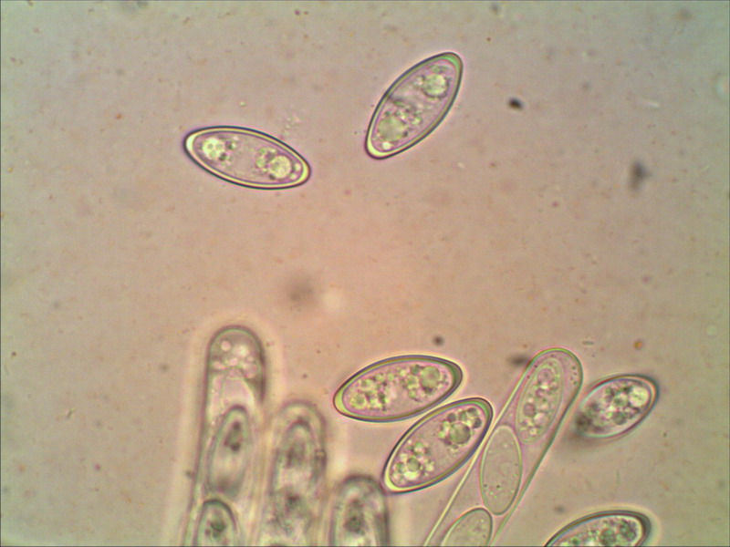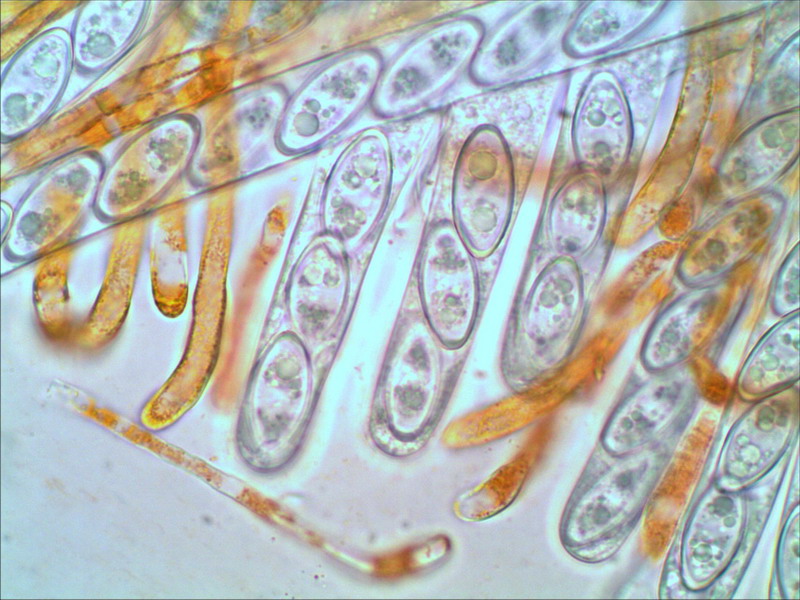 Hier sieht man auch deutlich gekrümmte Paraphysen und die Sporen sind kleiner