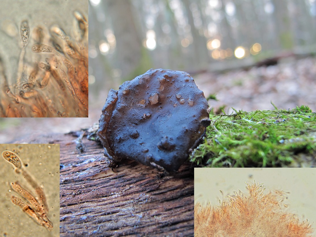 : Hallo allerseits, gestern habe ich zufällig ein Eichenstöckchen gedreht und fand Exidia glandulosa mit Gallen.....hätte ich nicht den Thread verfolgt, wäre mir da gar nichts aufgefallen. Nach dem Abpräparieren einer Galle gab das Mikro dann letzte Klarheit. Ich bin mir aber sicher, dass ich diese Gallen schon öfter gesehen habe. Ich hänge ein Bild an, die Mikros sind nicht wunderbar, aber eindeutig. Beschrieben und schön gezeichnet ist die Art von Roberts (1991) New heterobasidiomycetes from Great Britain. Mycotaxon 63, Seite 210. Bei Cyberliber. Viele Grüße von der sehr erfreuten Hermine