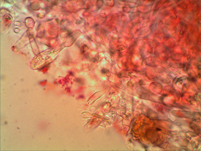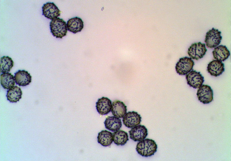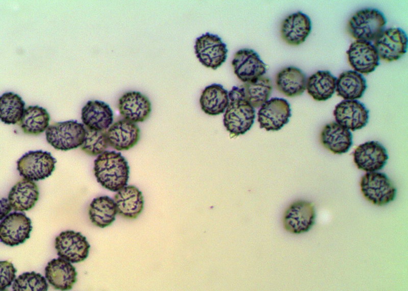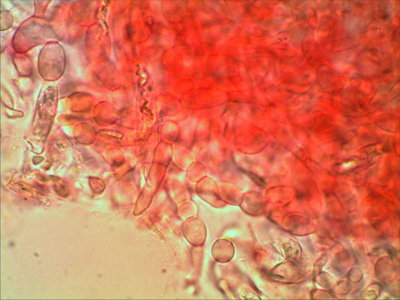Nun noch dieser hier, recht bunt gefärbt. Einige Stimmen sagten, das wäre galochroa. Nun, wo ist der nächste Besen, den ich essen kann. Zumindest mit solch genetzten Sporen kenne ich meine eingsammelten hellen Tauben nicht. Unter Eichen, Sporenpulver 2b, Geschmack mild. Durchmesser ca. 4cm