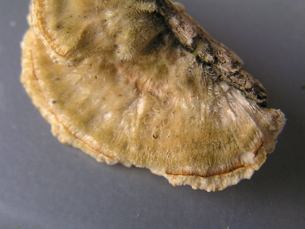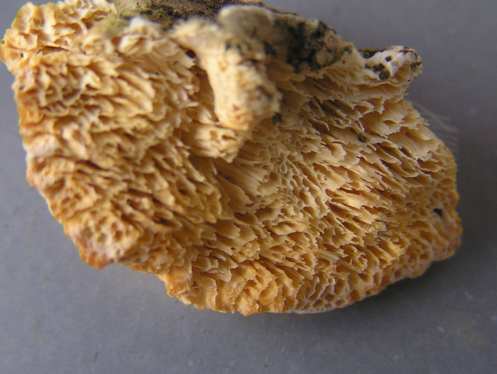 Jetzt, mit Lupe und Literatur bewaffnet, bin ich der Meinung den Zahnförmigen Lederporling - Trichaptum fuscoviolaceum / hollii, gefunden zu haben.