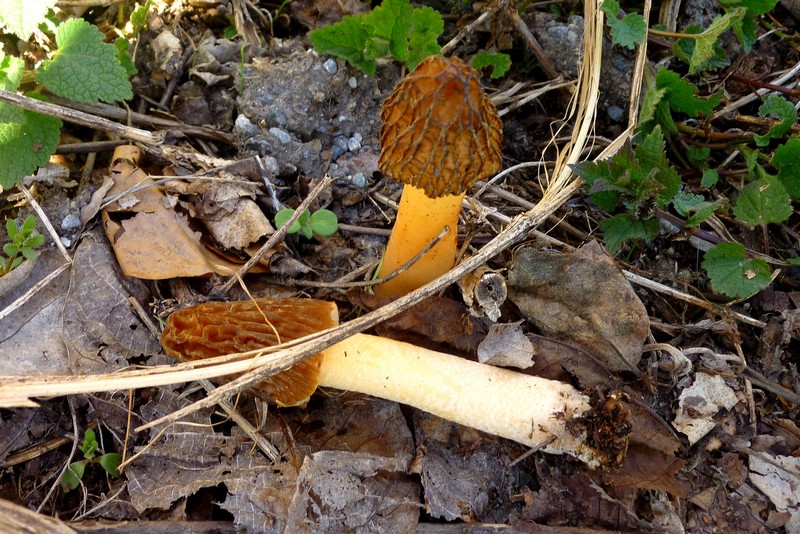 Auch hier im Graubündner Rheintal noch keine Morcheln; aber ganz kleine M. crassipes (H. Kellner) stehen da doch manchmal rum. Auch die Anzeigerpflanzen haben hier deutlichen Rückstand. Mairöschen, Bärlauch, Knabenkraut, Eschen- und Ligusteraustriebe usw. .