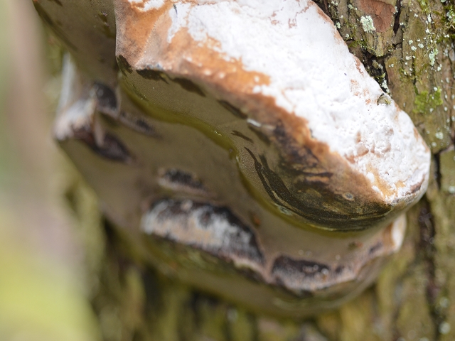 Auf Erlen fand ich bisher den erlenschillerporling am häufigsten. Nun habe ich einen anderen Kandiaten, der allerdings auch schöne Farben (violett) zeigt. Vielleicht ein Phellinus?