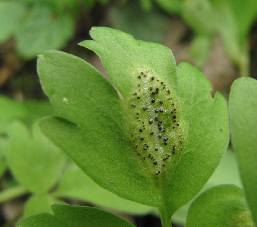 ... ein schöner Rostpilz auf Moschuskraut, nämlich Puccinia adoxae.