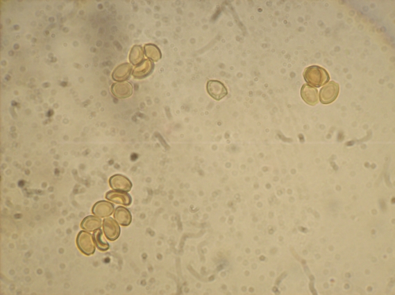 SPOREN: Eiförmig, mit Keimporus. Foto: Sporen in Öl, 1000-fach.