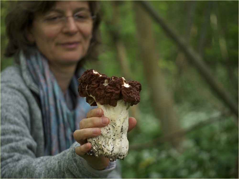 In der Hand der stolzen Finderin, bekommt man einen Eindruck, wie gross die Lorchel ist. Ich finde in jeder Saison G. esculenta aber selbst besonders grosse Exemplare waren nie auch nur halb so gross.
