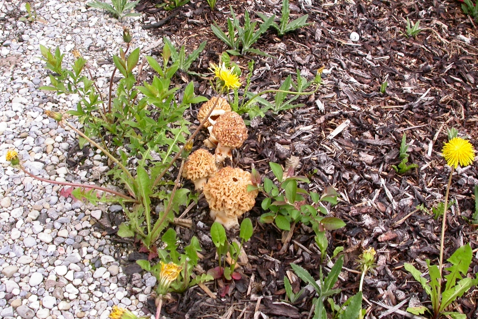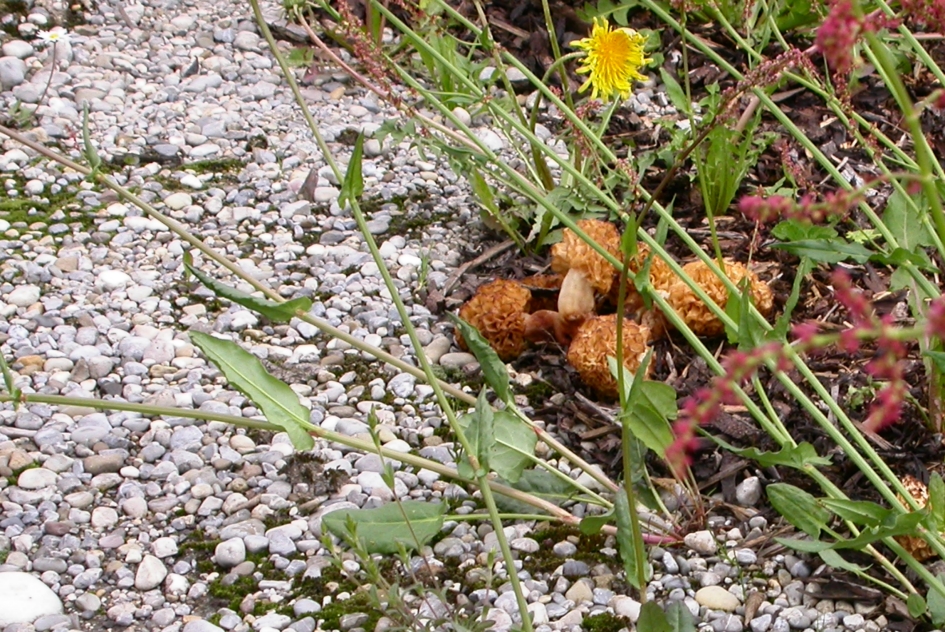 Auf dem Mulch stand nicht eine der Morcheln, sie drückten sich lieber um die Löwenzähne.