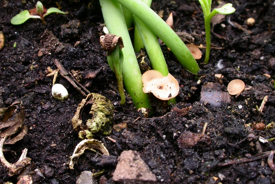 Ich nehme an, dass der Pilz auf den Tulpenzwiebeln wächst.