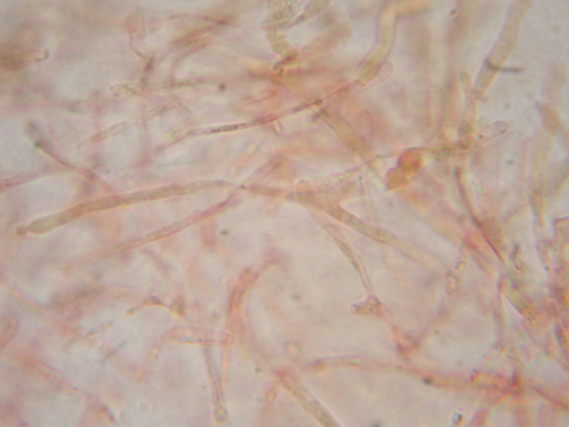 HDS: Ixotrichoderm, ca. 200 µm dick, Zellen aufsteigend, stark gelifiziert, in der obersten Lage oft mit intrazellulär gelb pigmentierten, fast büscheligen, aufgerichteten Endzellen, diese zylindrisch, ca. 3-4 µm breit und mit abgerundetem Apex, bisw. mit kristallartigen Auflagerungen (keine typischen Inkrustationen);