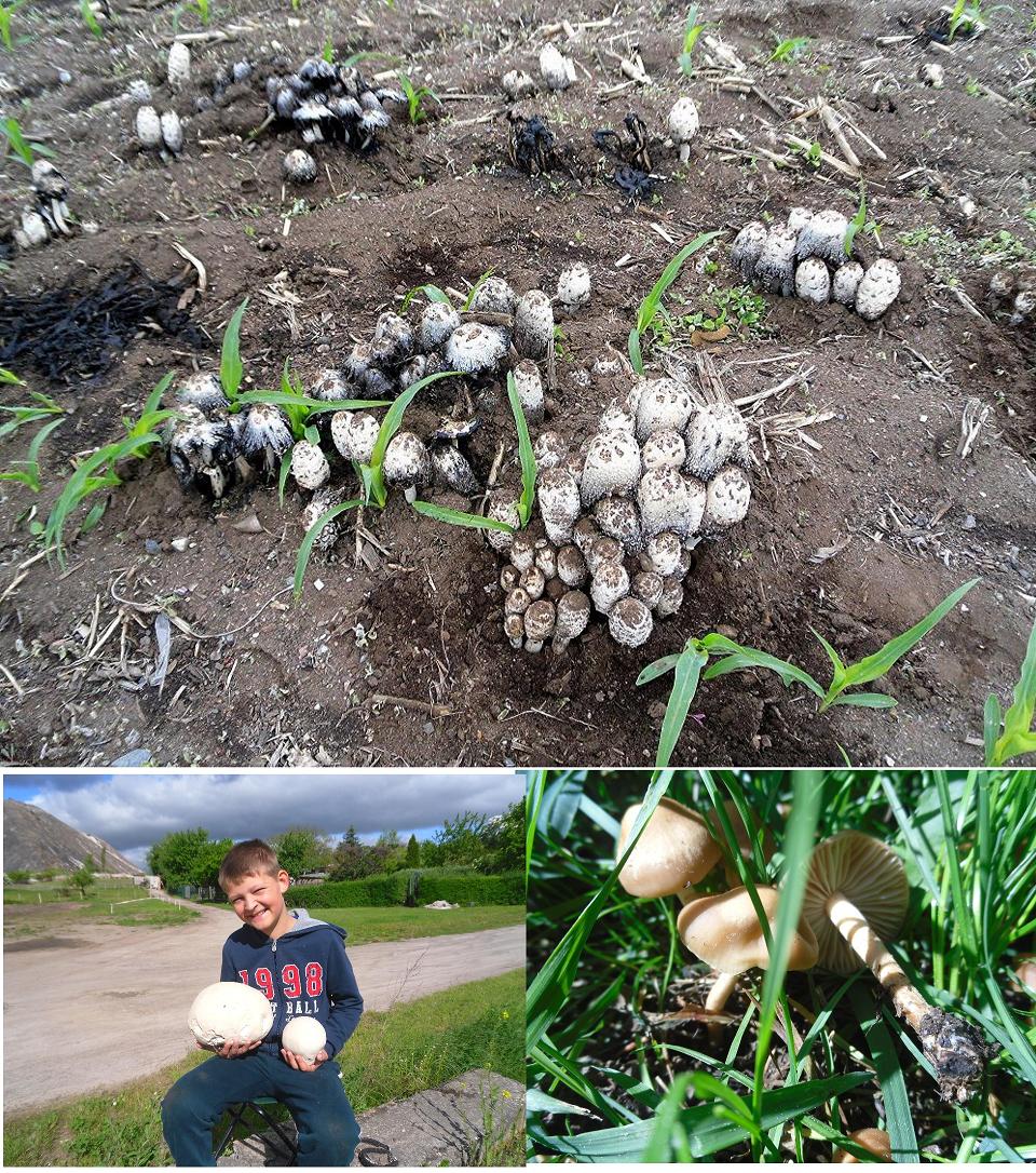 Schopftintlinge und Boviste im Frühjahr ernte ich jedes Jahr. Der Schwefelporling muß jetzt auch kommen. Doch was wächst denn da im Gras? Sieht aus wie ein Nelkenschwindling, doch der Geruch fehlt.