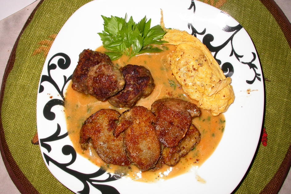 -Hexenschnitzel mit Eischaum und Fleischpflanzerl auf Kräuterrahmspiegel-