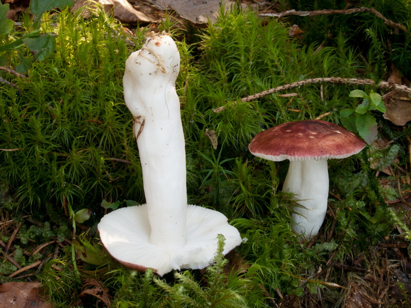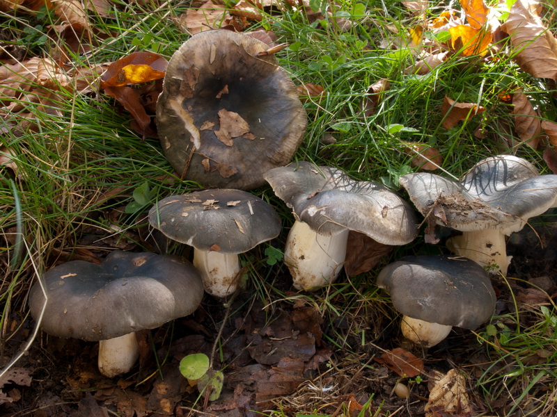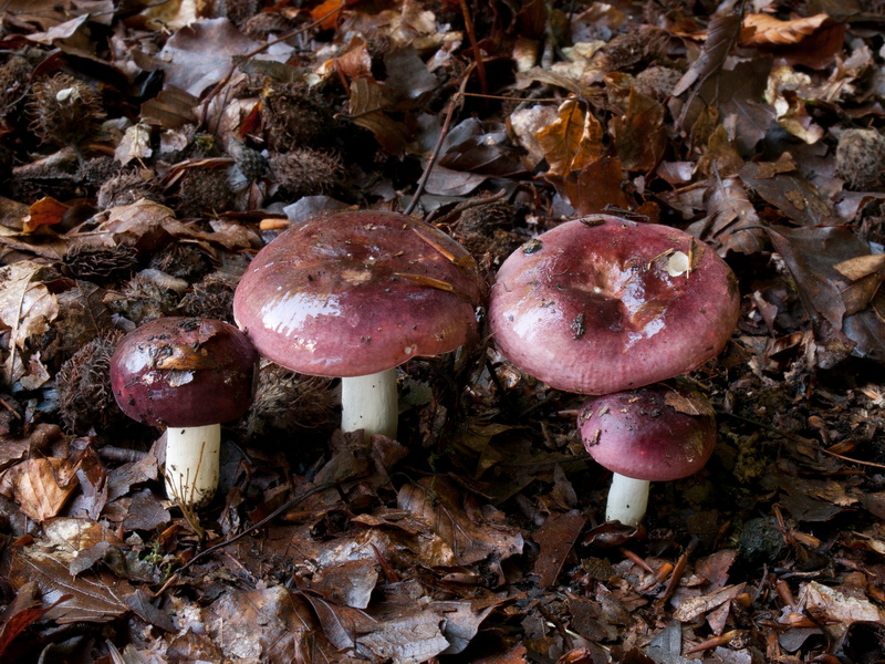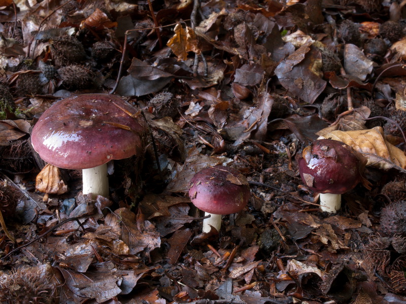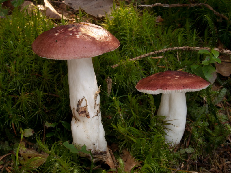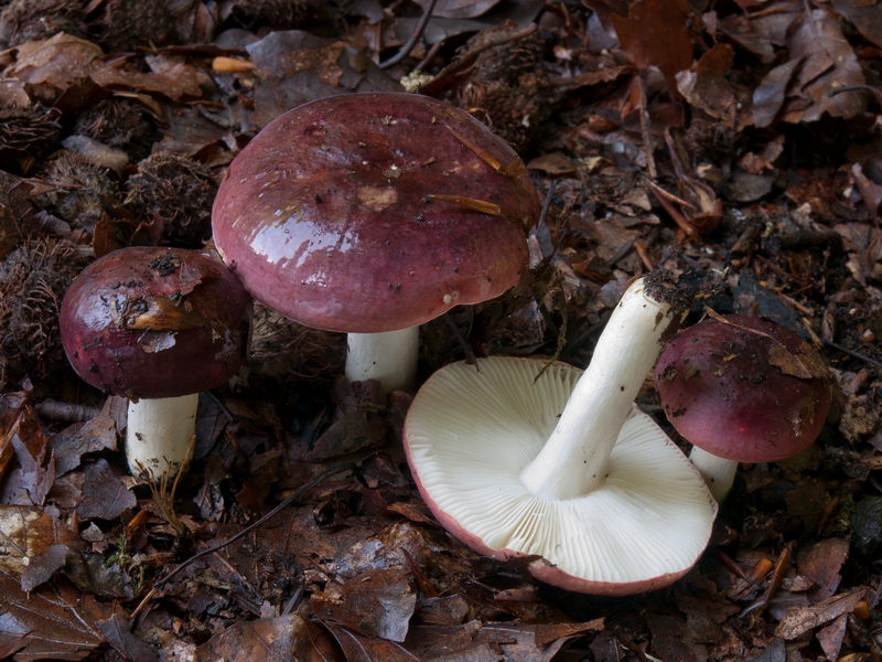 Hallo zusammen, puh, das schüttet ... Wenn's so weitergeht, muss ich am Sonntag mit dem Boot zum Schwammerlsuchen fahren. Zur Abwechslung mal ein paar Täuberln aus der letzten Saison. Ich hatte diese Arten alle noch nicht, deshalb möchte ich für die Bestimmung nicht die Hand ins Feuer legen. Bitte melden, wenn ich wo daneben liege. Russula brunneoviolacea Crawshay: