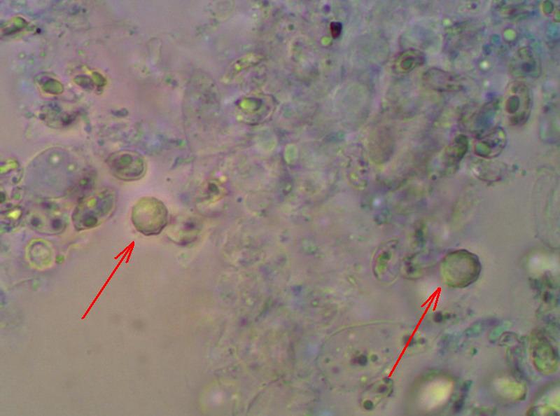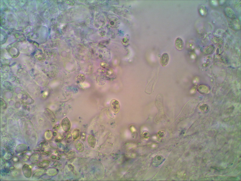 Hier hätte man durchaus auf Crepidotus wetten können, aber die Mikros sagen was anderes.