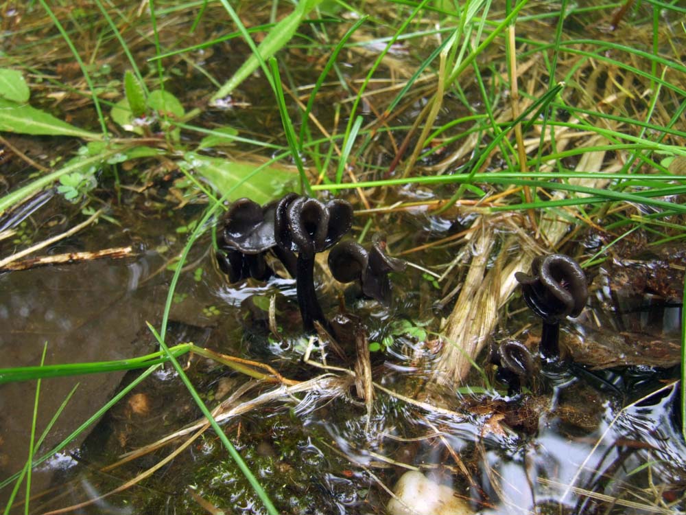 Auch so mancher Pilz bekommt beim derzeitigen Extremhochwasserereignis leider mehr Wasser von unten als von oben und damit nasse Füße, während die vom „Pilzfreund“ als Entschädigung für das miese Wetter eigentlich erwarteten simultanen Morchel-, Pfifferlings- und Steinpilzschwämmen ausbleiben – jedenfalls ist zumindest im Raum Leipzig weitgehend das für einen eher verregneten Frühsommer durchaus jahreszeitgemäß normale Großpilzaufkommen zu verzeichnen: Morcheln natürlich durch, Sommersteinpilzstellen noch nicht abgeklappert, ein sich aus der Erde quälender Boletus edulis gestern am Rand einer vielbefahrenen Leipziger Straße, Pfifferlinge – da müsste ich mal nachschauen gehen, wenn ich dazu nicht eine Taucherbrille benötige, weil die mir nächste zuverlässige Stelle an der Pleiße vielleicht gerade unter Wasser steht. Nun ja, einen spektakulären Erstfund darf ich hier dennoch zum Besten geben: Es handelt sich um die ursprünglich aus den Dnjepr-Auen bei Kiew beschriebene Hydroleptopodia atroaquosissima Wasser 1987, die Typusart der monospezifischen Gattung der Wasserschmalfußlorcheln (noch kein deutscher Name vergeben, vermutlich essbar, aber etwas wässrig im Geschmack) ;-)
