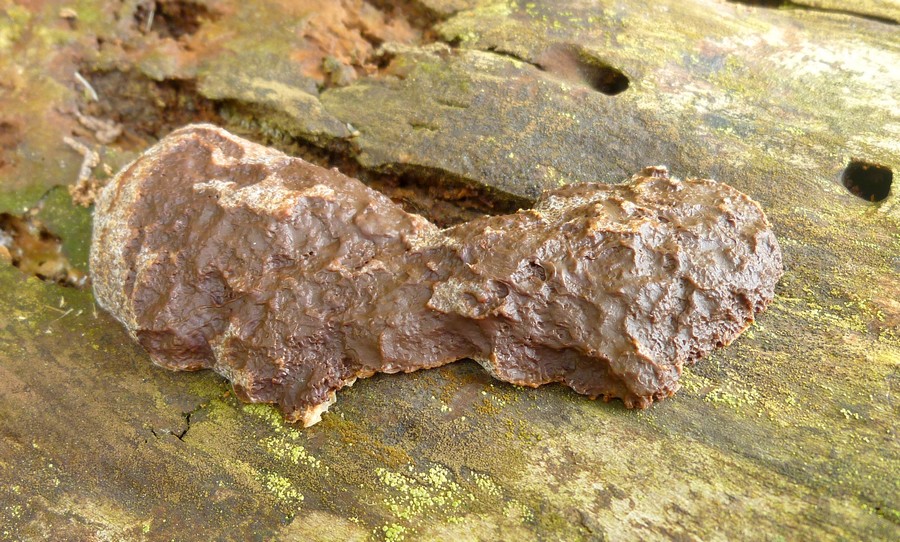 Suche auch nach einem Beschrieb im Internet - event auch anderssprachig? Heute, nach einer regnerischen Nacht, machte ich die dritte Aufnahme des Schleimpilzes. Das Fleisch änderte seine Farbe auf schokoladebraun? Das Fleisch zeigt eine Säulenstruktur, wie bereits erwähnt, in Richtung Bienenwabe.