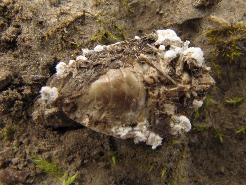 Hallo, diese Isaria/Paecilomyces spec. habe ich auf einer Wanze, wahrscheinlich die Grüne Stinkwanze (Palomena prasina), gefunden. Ich hätte ja kein Problem damit, dass Isaria farinosa auch mal nicht auf einer Puppe oder Larve vorkommt. Da man aber offenbar sehr zahlreiche Arten in der Gattung trennt, bin ich doch etwas verunsichert. Leider habe ich keine Literatur zu diesem Thema (Was gibt es da?) und auch im Internet findet sich kaum etwas, das bei der Bestimmung hilft. Konidien: 2,5 x 1,5-2 µm Viele Grüße