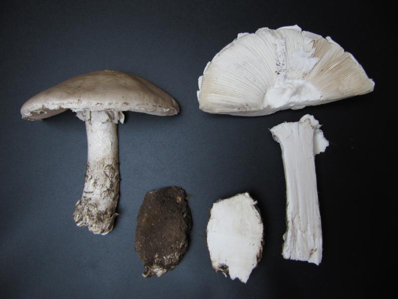 Ich dachte schon an den Eierwulstling (Amanita ovoidea), aber eine Volva konnte ich nicht feststellen. Außerdem passen der Geruch (nicht fischartig) und die Beschaffenheit der Manschette (nicht flockig-vergänglich) nicht. Für den Wurzelnden Egerlingsschirmpilz (L. barssii) passt die Hutbeschaffenheit nicht. Viele Grüße