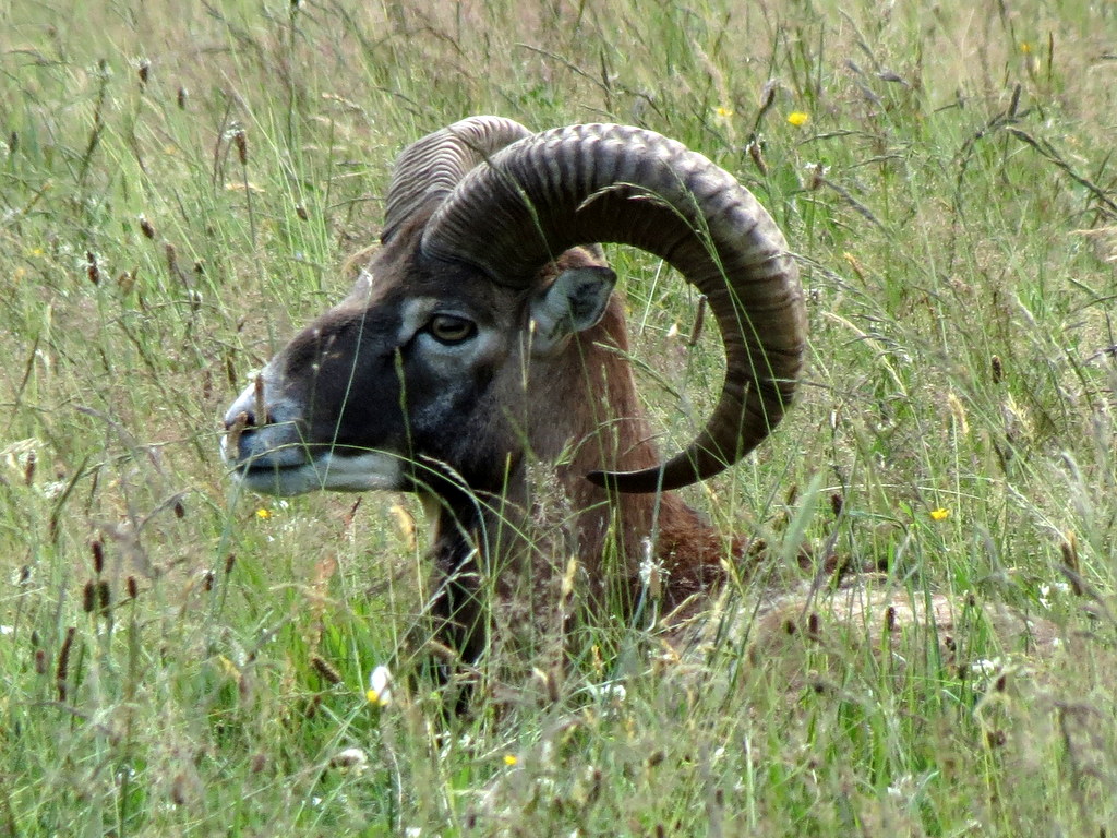 Chef der kleinen Mufflon-Herde im Hotelgehege