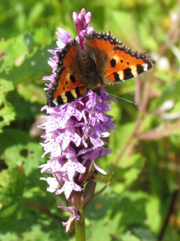 Kleiner Fuchs an Geflecktem Knabenkraut, Grenzstreifen Kaffeehorst, ganz nah am Edelweis.