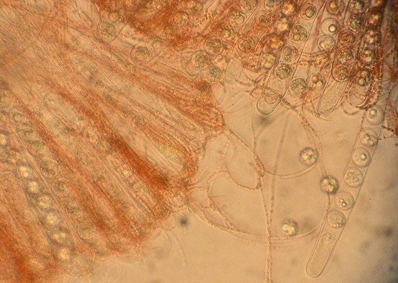 In Wasser (400x). Auffällig fand ich die sehr langen, fadenförmigen Paraphysen.